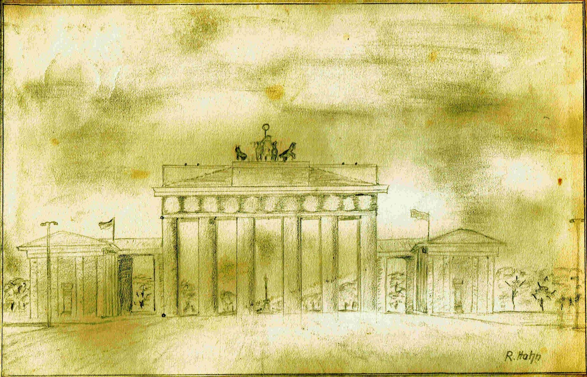 Bemerkenswert war der Tag vor dem Opernabend, wir standen dicht vor dem Brandenburger Tor. Keiner wagte es, näher heran zu gehen. Es war untersagt. Ich prägte mir das Motiv ein und zeichnete es einige Tage später nach. Ich gab es irgendwann meinem Lehrer.