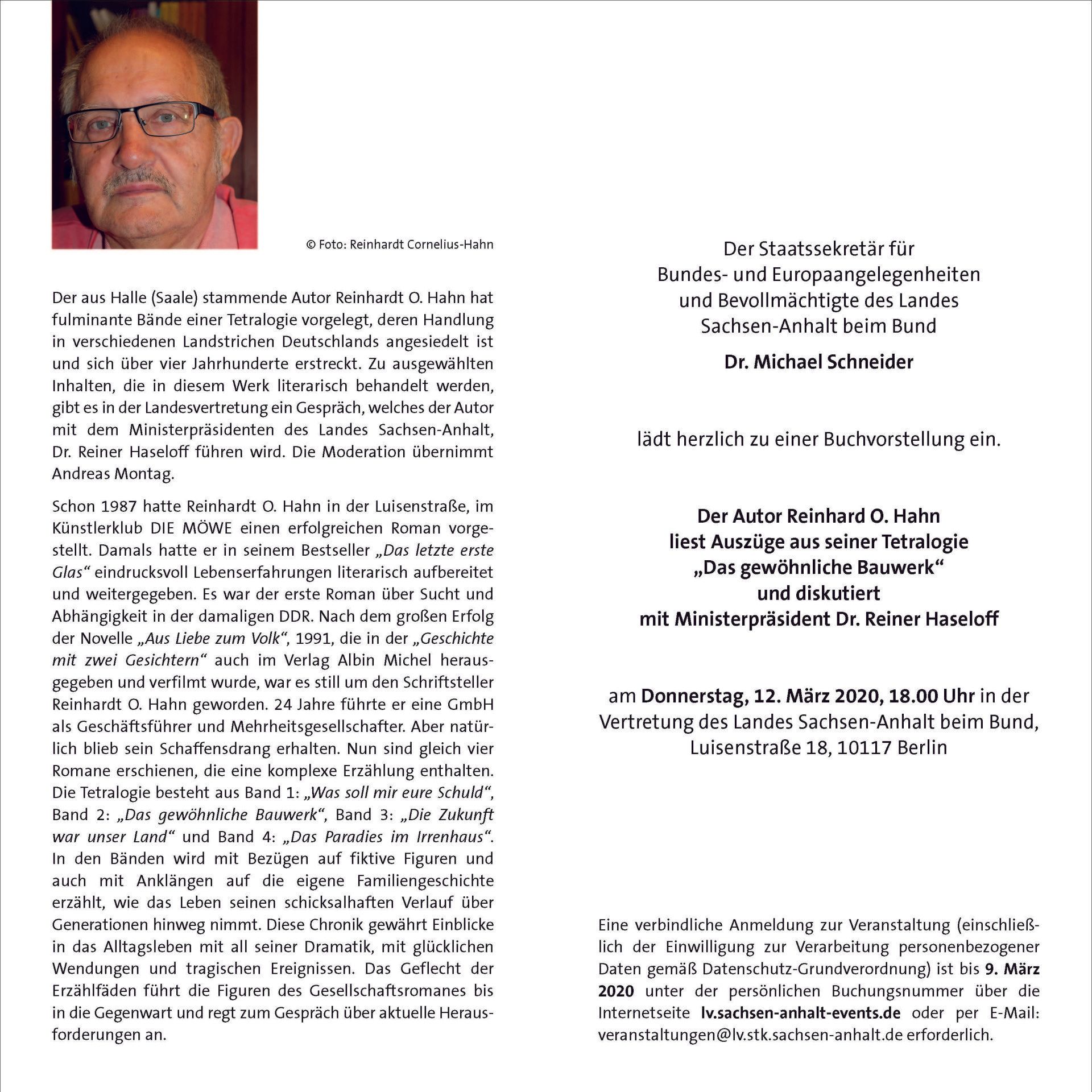 Nach Band eins im vorigen Jahr („Was soll mir eure Schuld“) legte Hahn nun anlässlich der jüngst in Leipzig zu Ende gegangenen Buchmesse die Bände II („Das gewöhnliche Bauwerk“) und III („Die Zukunft war unser Land“) vor. Band vier („Das Paradies im Irrenhaus“) soll im Herbst folgen.